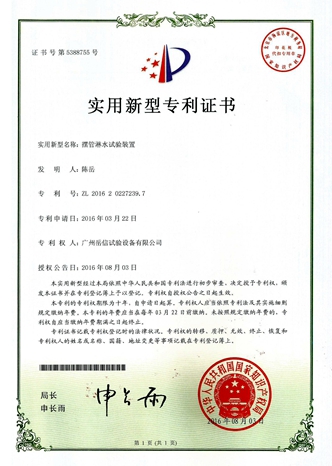 • 全自動噴水試驗箱-實用新型專利證書【岳信公司】